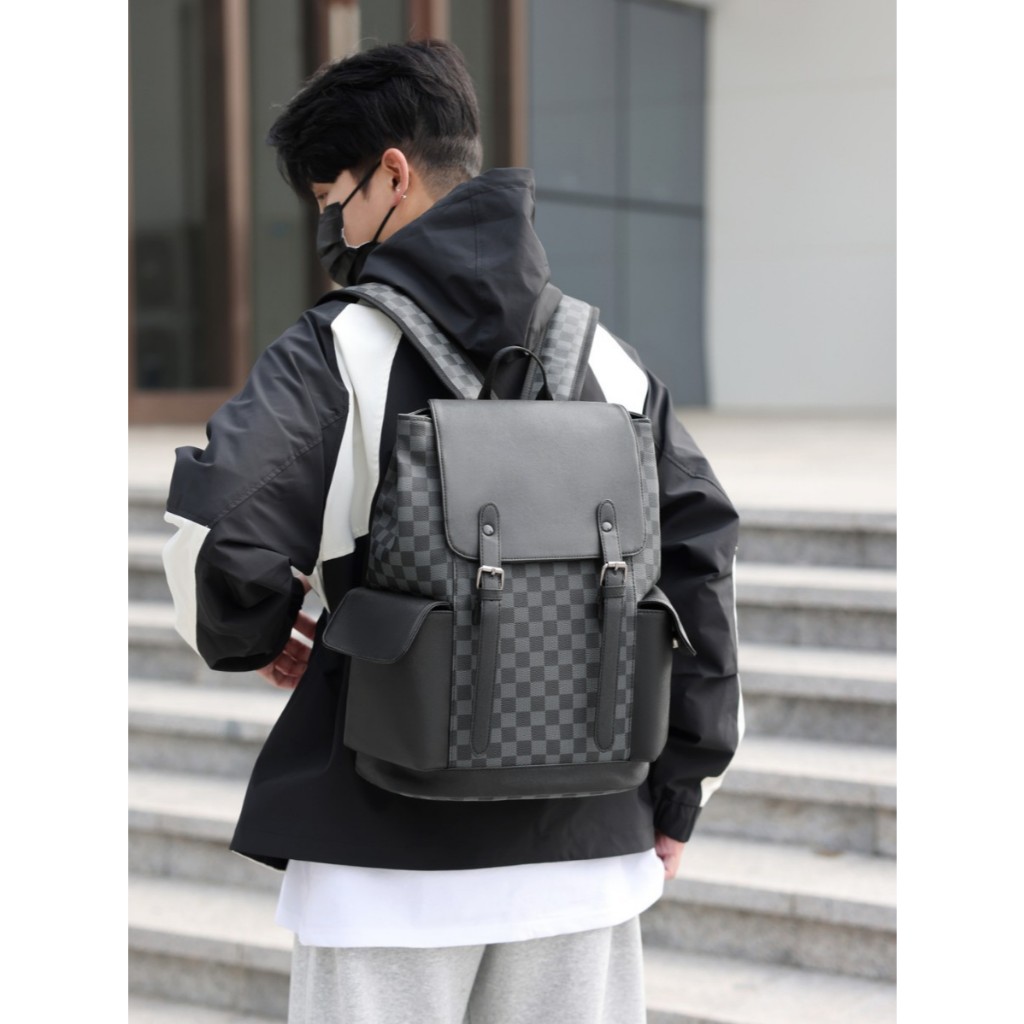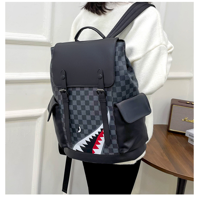 Tas Ransel Pria Motif Shark Kotak Backpack Cowok Muat Laptop Sekolah Kuliah Kerja Anti Air T 0002 LB