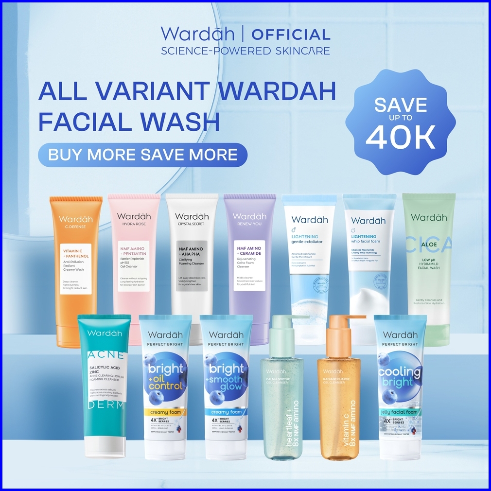 Wardah Face Wash All Series - Acnederm C-defense Lightening Perfect Bright Nature Daily Crystal Secret Renew You Hydra R