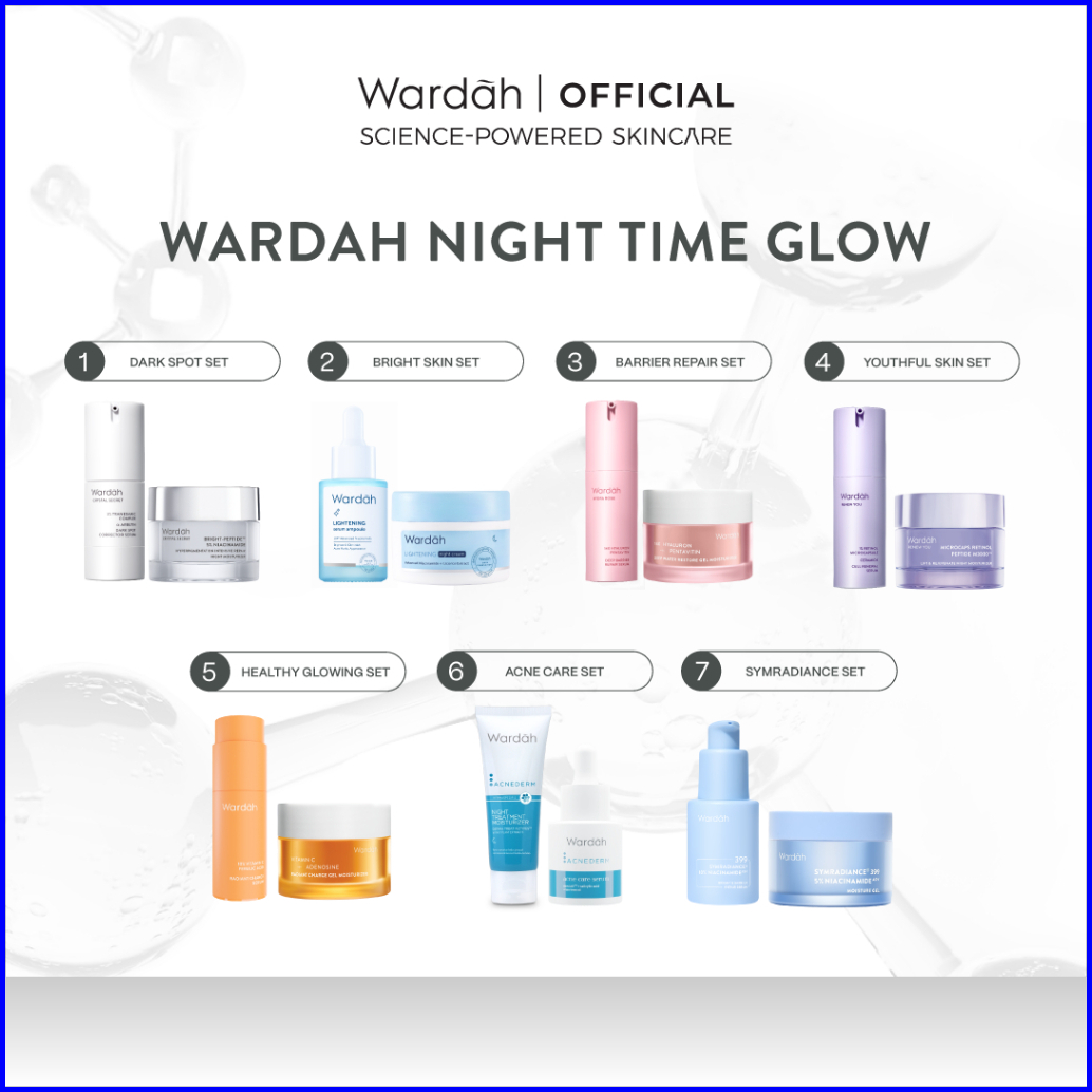 Wardah Night Time Glow 2 Pcs - Paket Serum Night Cream Brightening Dark Spot Eliminator Youthful Skin Barrier Repair Acn