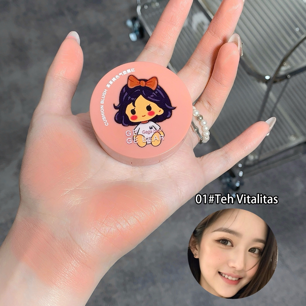 Gege Bear Blush on matte cushion bedak wajah alami desain lucu harga terjangkau perona wajah riasan glowing warna natura