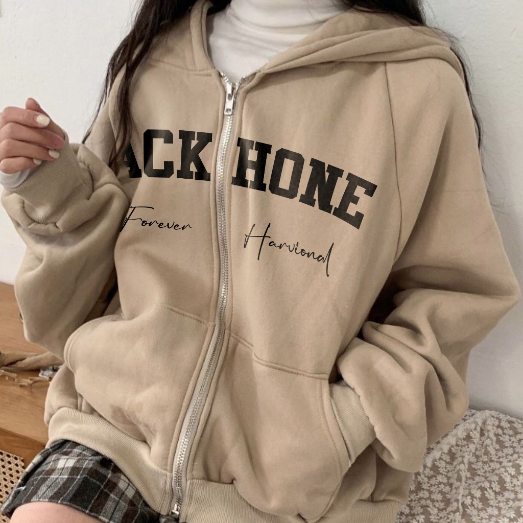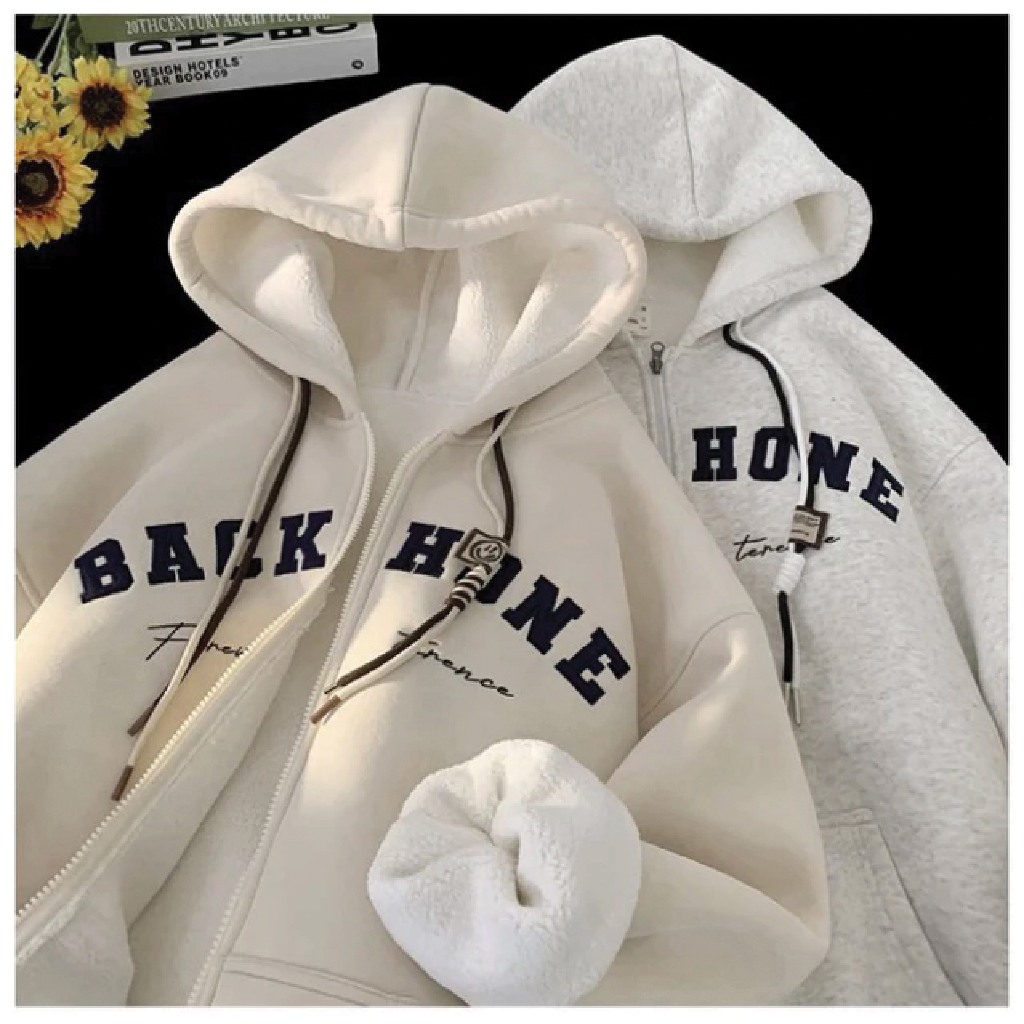 Harvional Jaket Zipper Sweater Back Hone Bahan Fleece Size S - XXL ( Pria & Wanita )