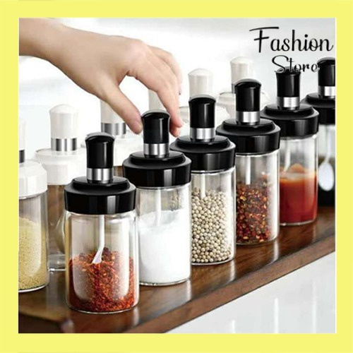 PAKET 5PCS Tempat bumbu + sendok dapur garam gula / kopi serbaguna botol bumbu tutup kedap Toples wadah bumbu minyak gar