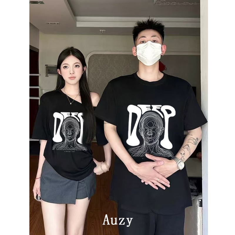 AUZY RISE PUNK Pasangan Atasan tanpa bahu kaos pria wanita atasan Lengan Pendek T-shirt skena baju oversize t shirt