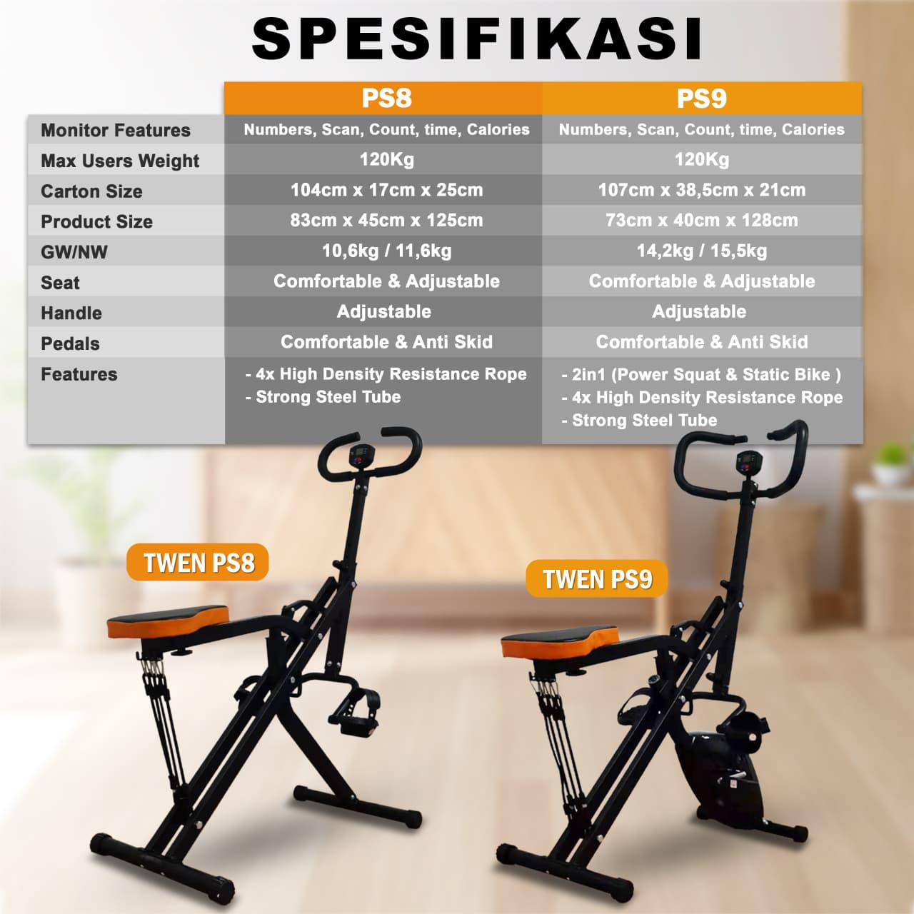 Alat Fitness Twen PS8 PS9 2 in 1 Power Squat Horse Rider Power Rider