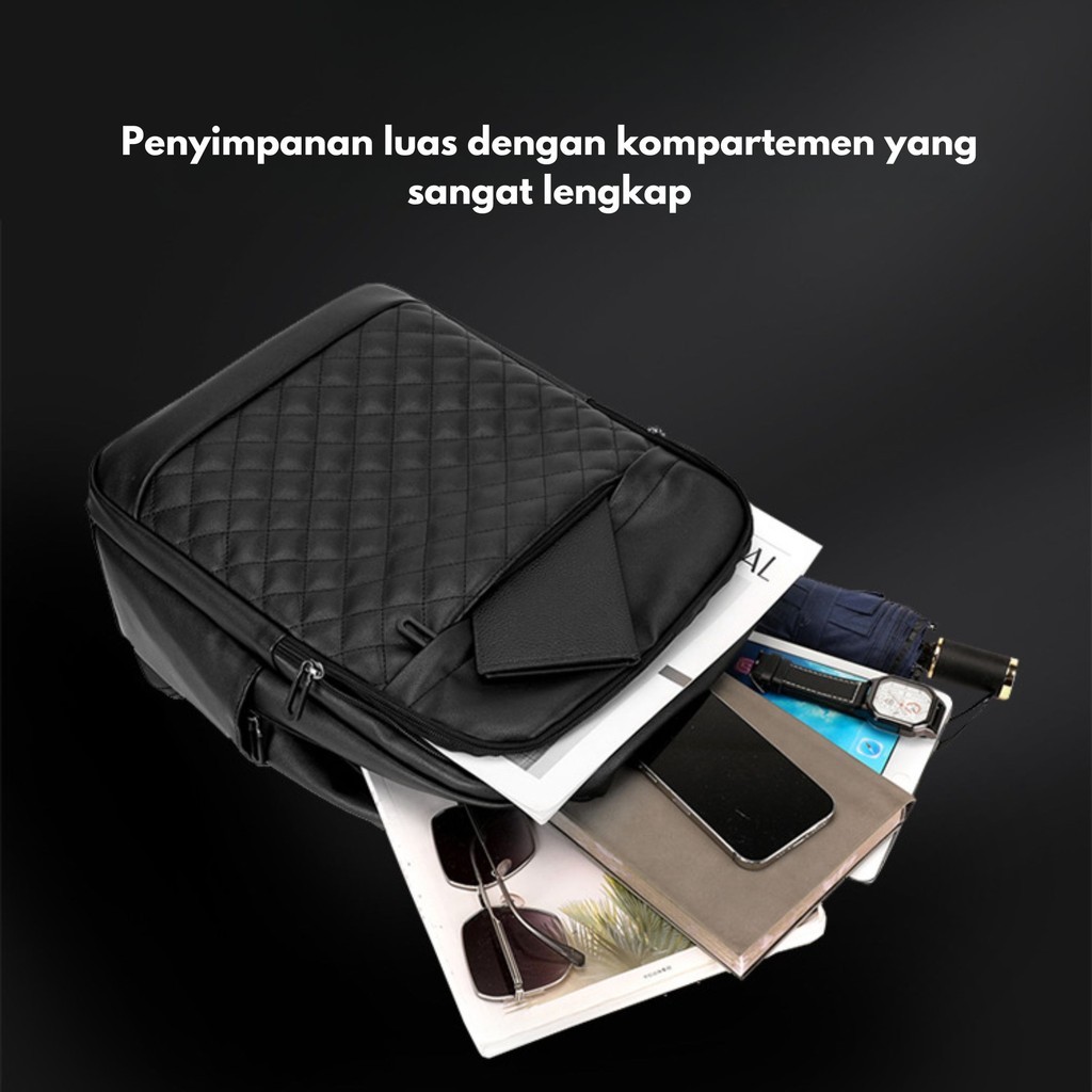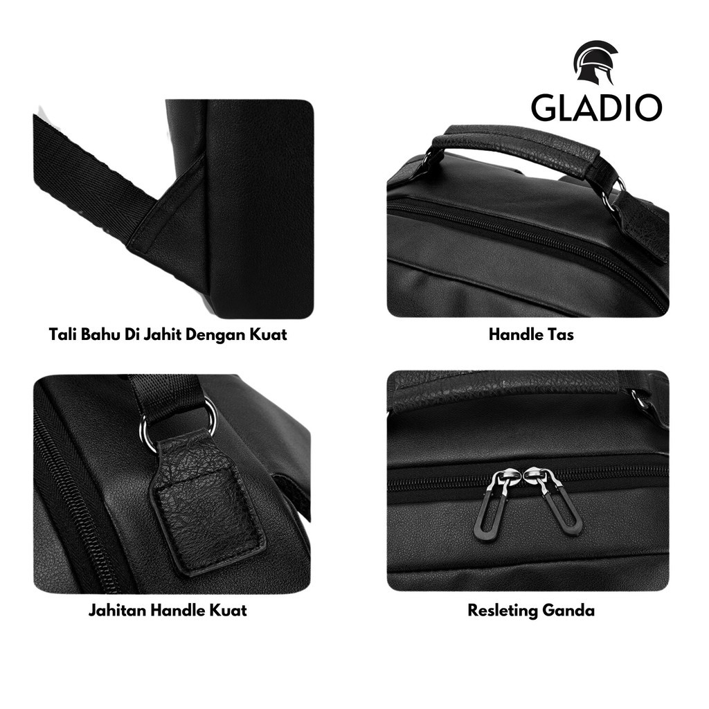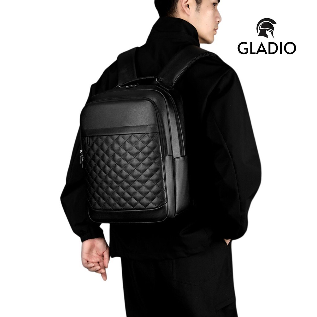 GLADIO Tas Ransel Pria Nidaime Kulit Hitam Terbaru Premium Fashion Branded Muat Laptop GLD022B5