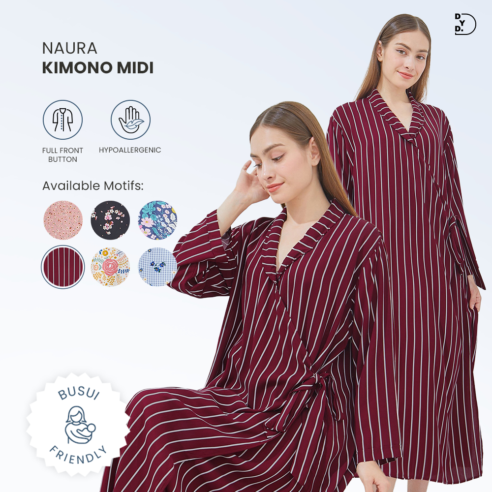 DYD LABEL Naura Kimono Midi Daster Busui & Lahiran Friendly Bahan Rayon Size Jumbo Dress Ibu Hamil Lengan Panjang Fit to XS-XXL