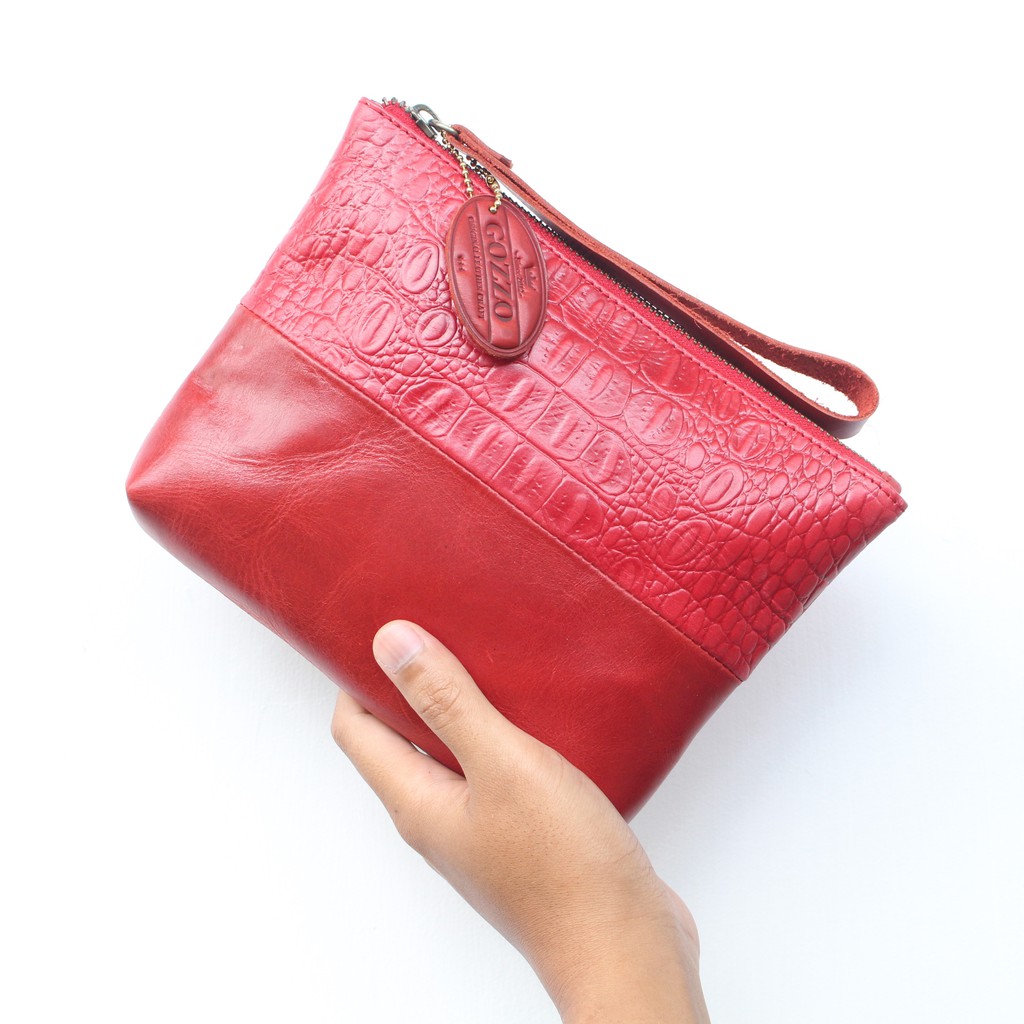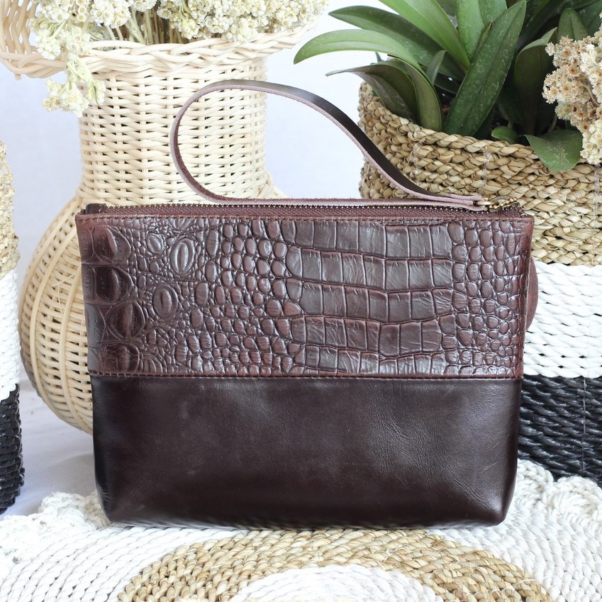 Gozzo Leather Clutch Wanita Kulit Sapi Asli Natasha Croco - Gratis Custom Nama