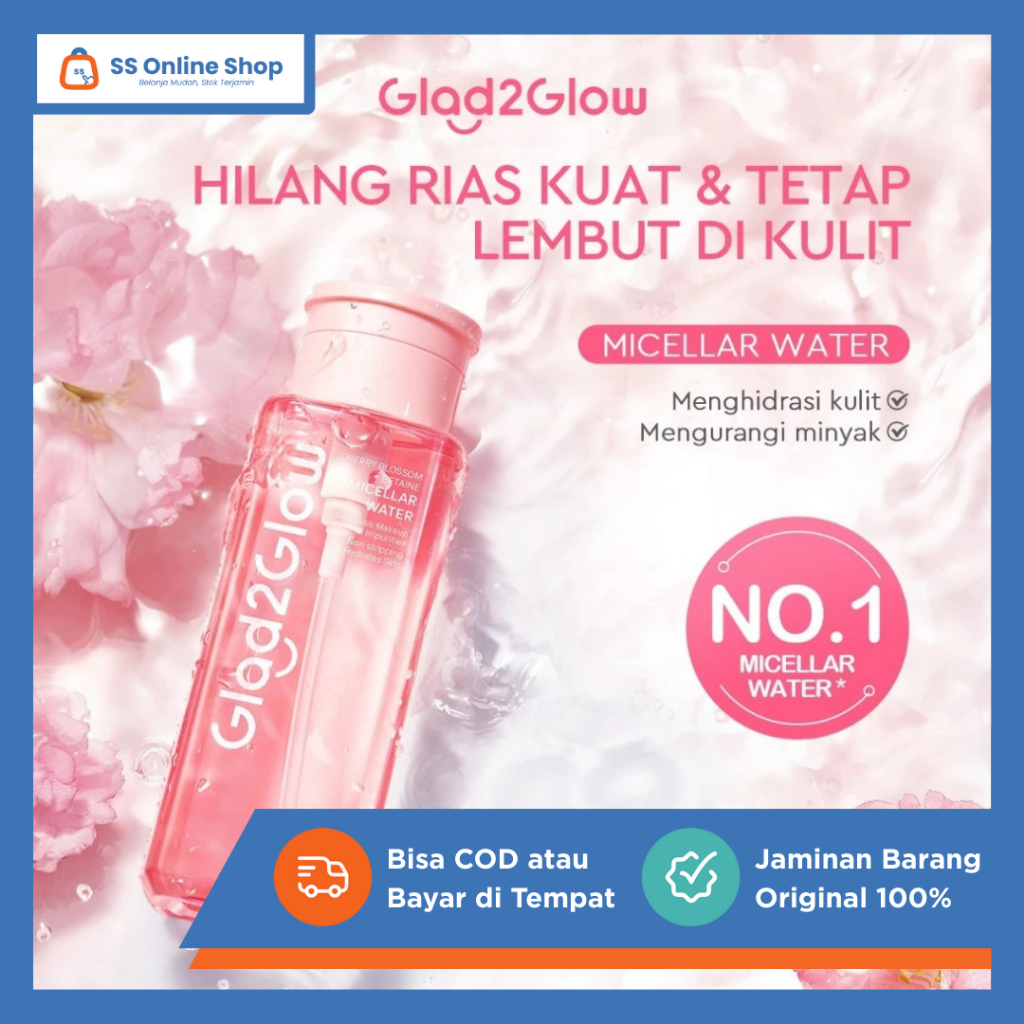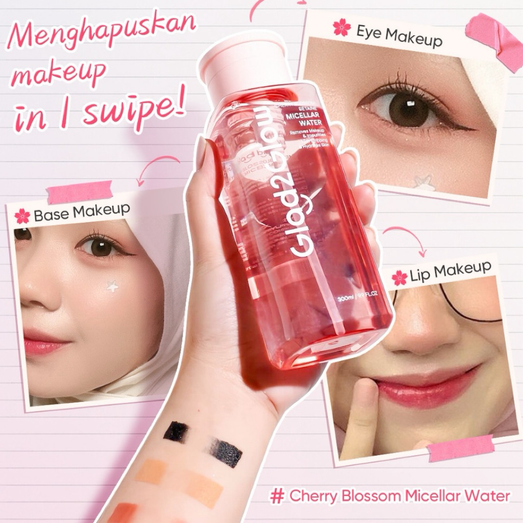 Glad2Glow Cherry Blossom Ubetaine Micellar Water 300ml – Pembersih Wajah Mengangkat Kotoran Makeup Oil Dirt Cleansing Wa