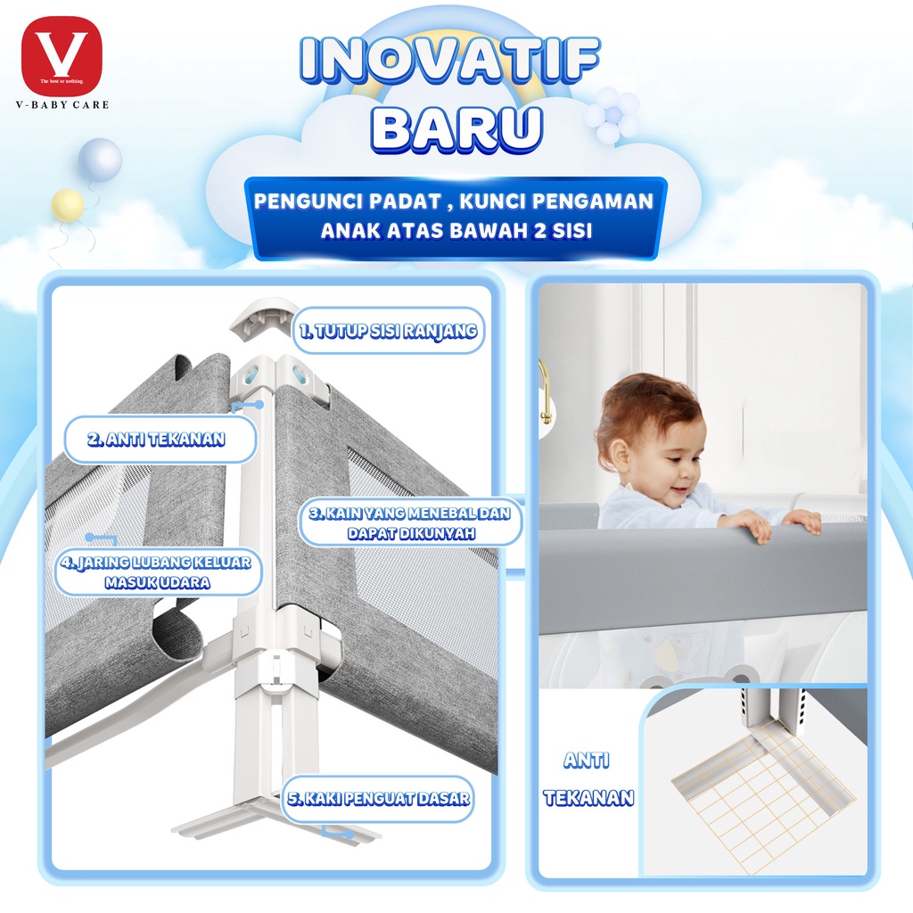 V-BABY CARE Baby Bedrail Baby Bed Rail Safety Guard Bedguard Fence Extra Tall Pembatas Pengaman Pagar Kasur Bayi Tempat