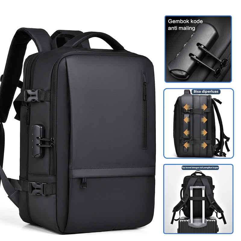 Highland Tas Ransel Pria Dengan Kunci Tas Backpack Kerja Tas Punggung Travel Besar Yang Bisa diperluas Anti Air TR749