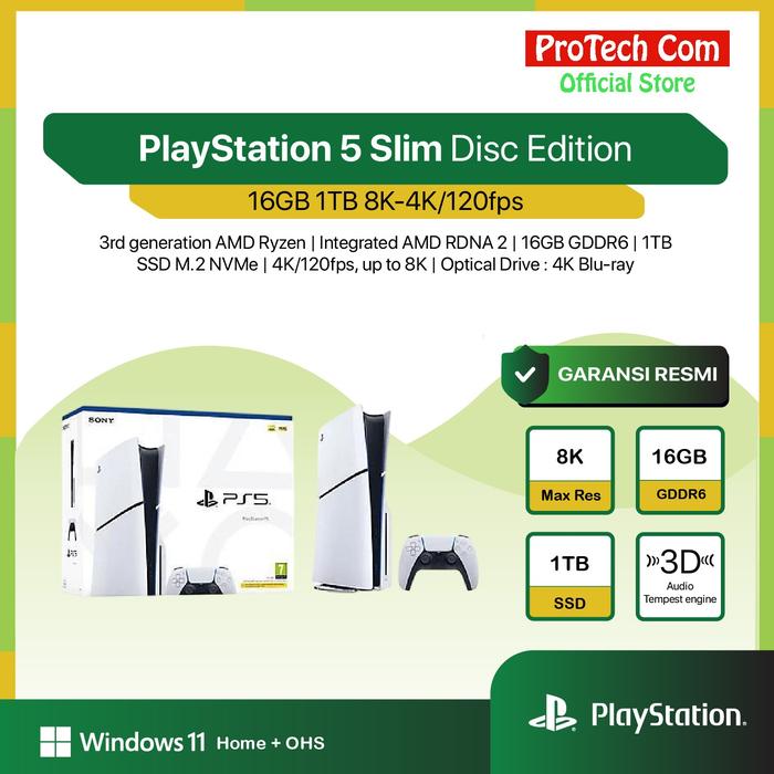 PlayStation 5 Slim Console Disc Edition PS5 16GB 1TB 8K 4K/120fps 3D Tempest engine DualSense Ethernet Wi-Fi 6