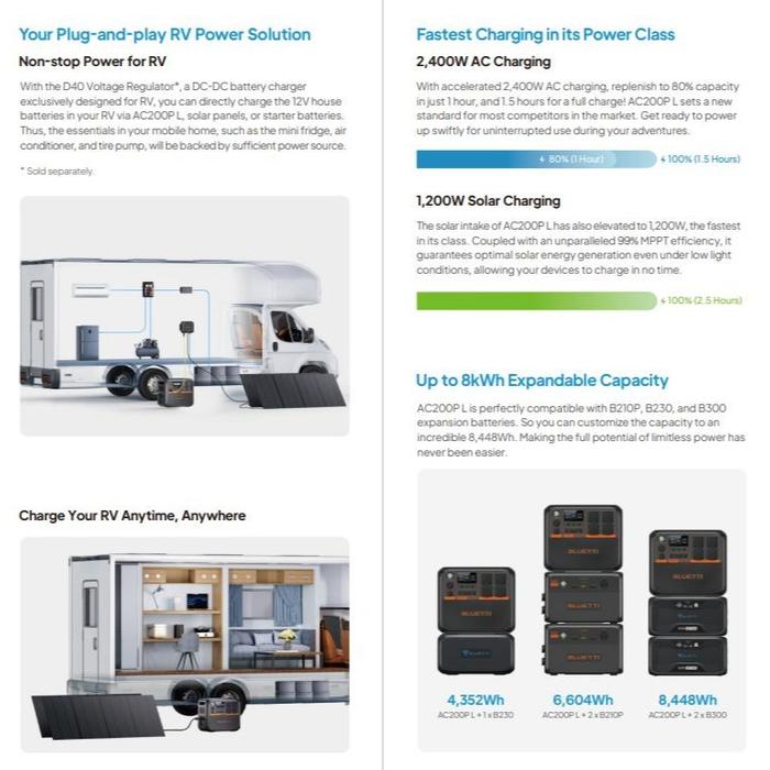 BLUETTI AC200PL Expandable Power Station 2400W 2304Wh + Solar Panel + MODULAR BATTERY B230