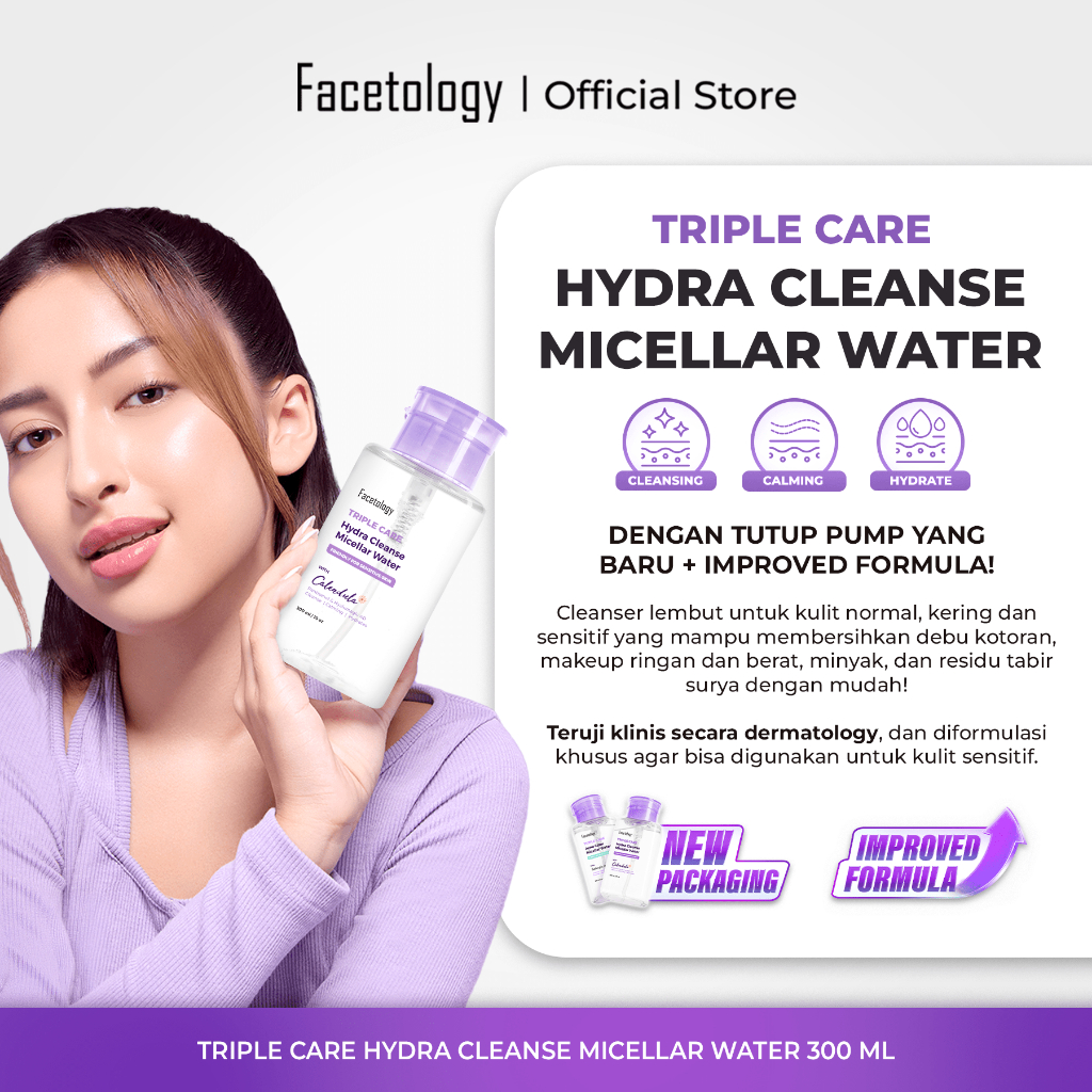 [Exclusive] Facetology Triple Care Hydra Cleanse Micellar Water 100 ML Pembersih Wajah Sensitive Skin Pembersih Make Up