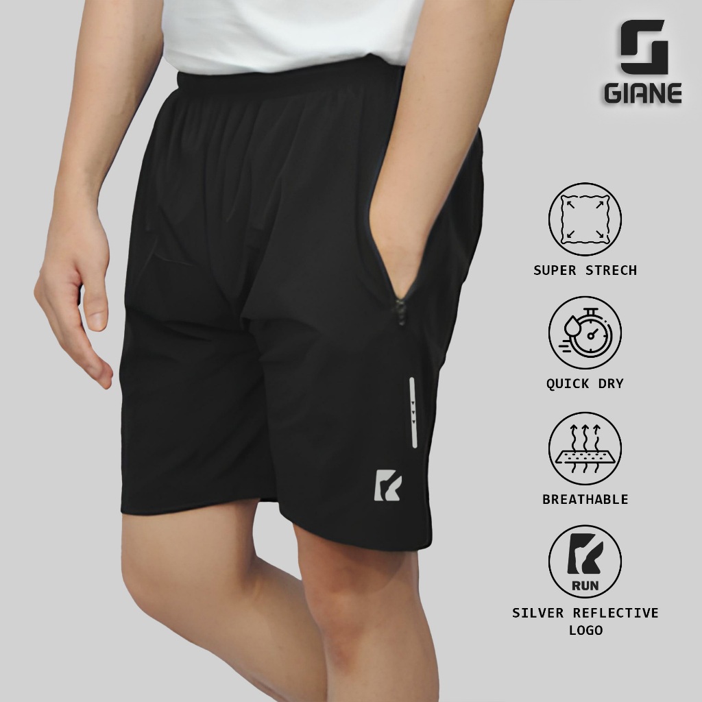 Celana Olahraga / Celana Pendek Micro Stretch Import Logo Silver Menyala