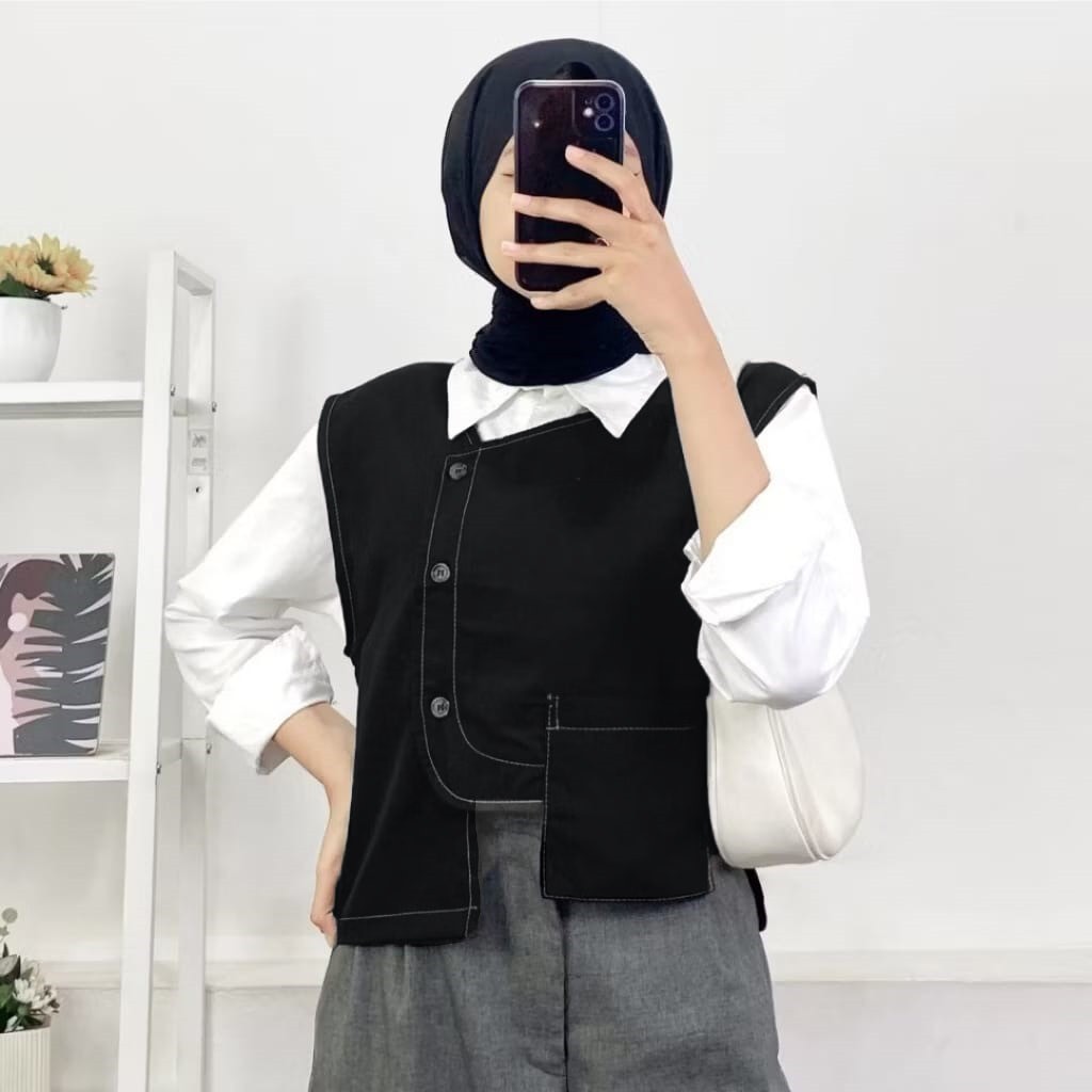 Ghea Outer Kemeja Oversized Sleveless Woman Thania Vest Style Black White Elodie vest Premium Rompi Wanita Casual Kerja