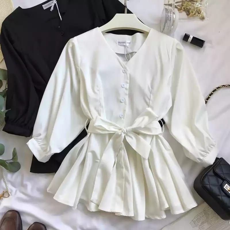 Sasha Top Blouse Waist Strap Plain Button Atasan Remaja Wanita Korean Style Premium