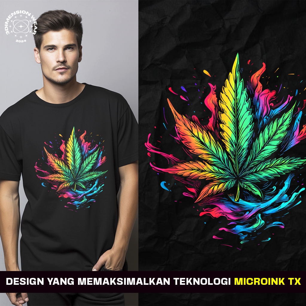 Nurdiansyah Style -Kaos Distro Premium Original 3D Rainbow Leaf Cannabis - DM0628