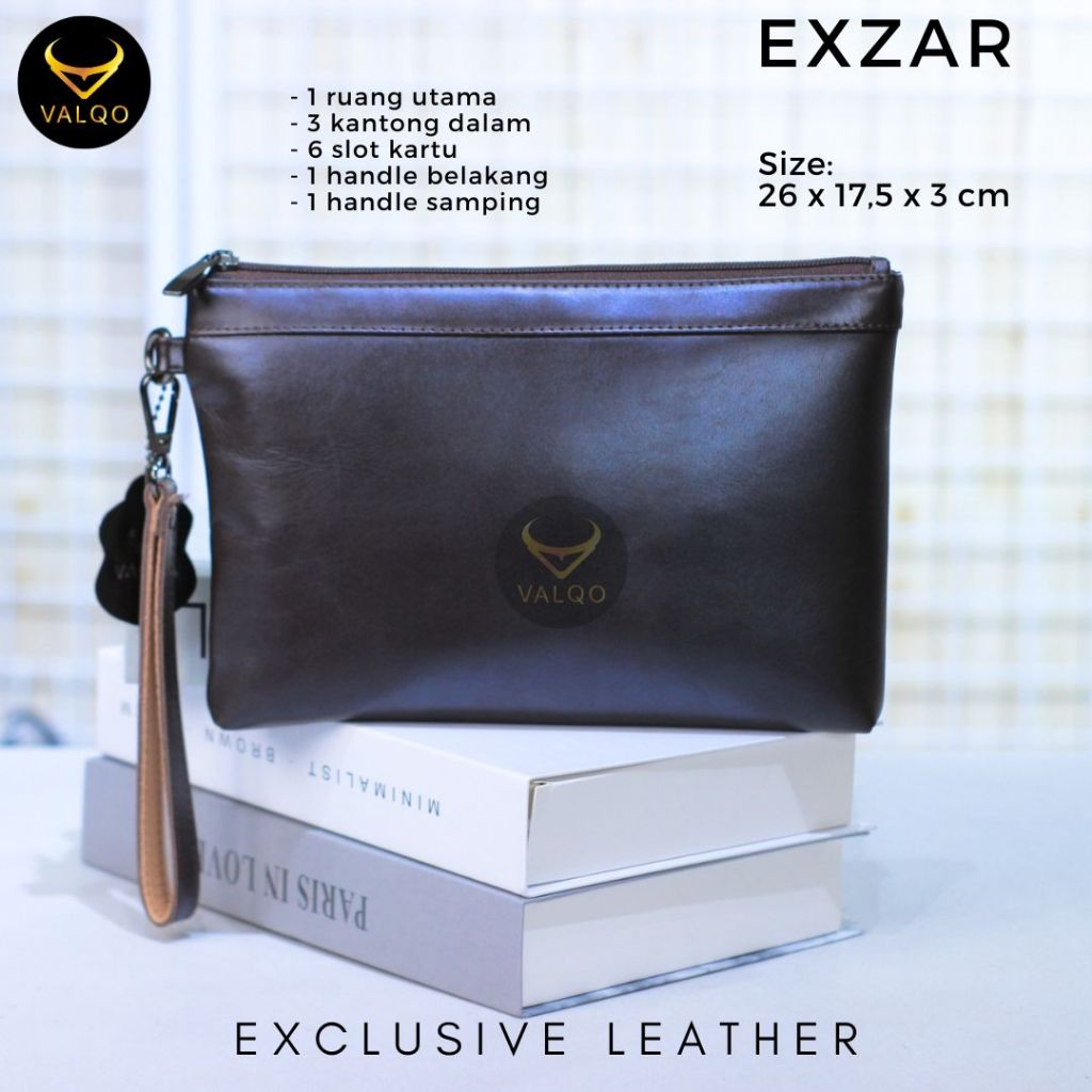 Valqo EXZAR Clutch Kulit Sapi Pouch Kulit Handbag Wanita Pria 6 Slot Kartu Tas Tangan