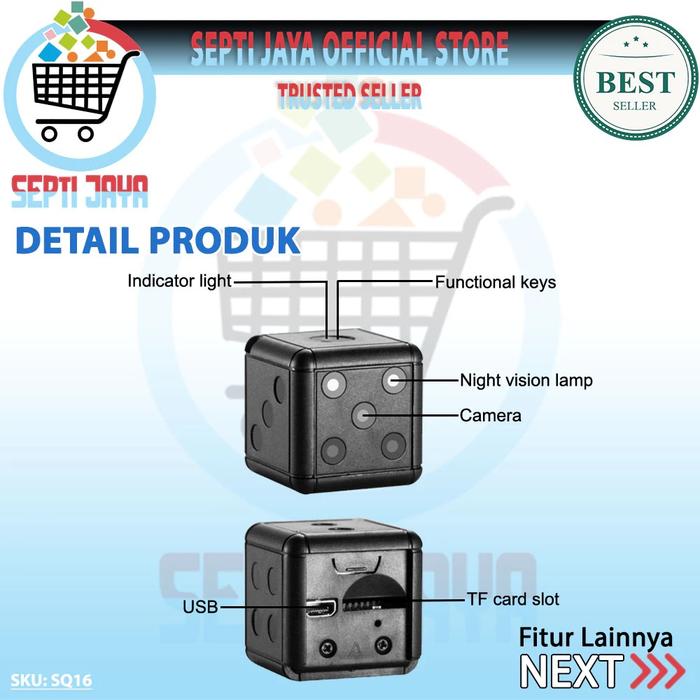Camera Mini SQ16 Kamera Dice Mini Gantungan Kunci Camcorder Perekam Vidio Poto Audio Voice Recorder