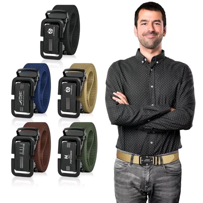 Ikat Pinggang Pria Nylon Canvas Model rel Fashion || KHS 09 - Hitam
