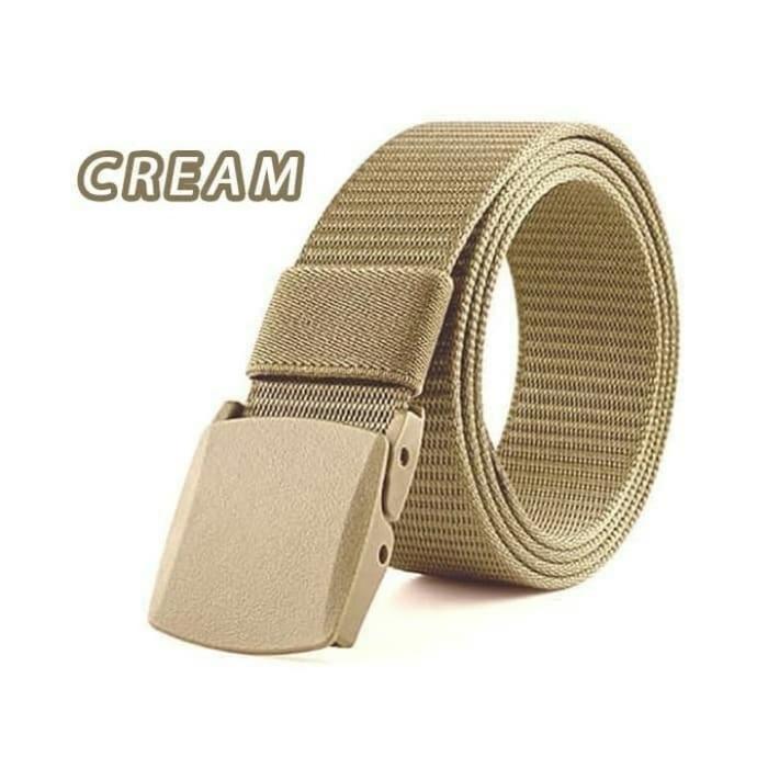 Sabuk Kanvas / Ikat Pinggang Murah Tactical Army anti xray Gesper Plastik hitam biru hijau krem - HITAM