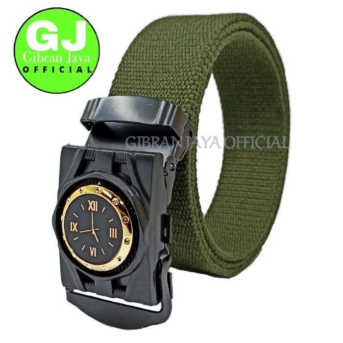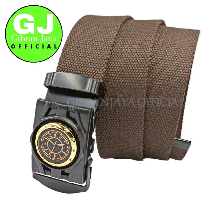 Gesper Ikat Pinggang Pria dan Wanita Katun Motif Jam Klasik - Hitam Jam -