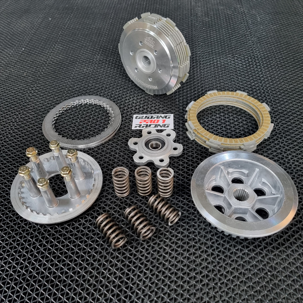 1 SET RUMAH KAMPAS KOPLING RACING. KAMPAS ISI 6, PLAT ISI 5, PER 6 ( CRF 150 VERZA NEW MEGA PRO)