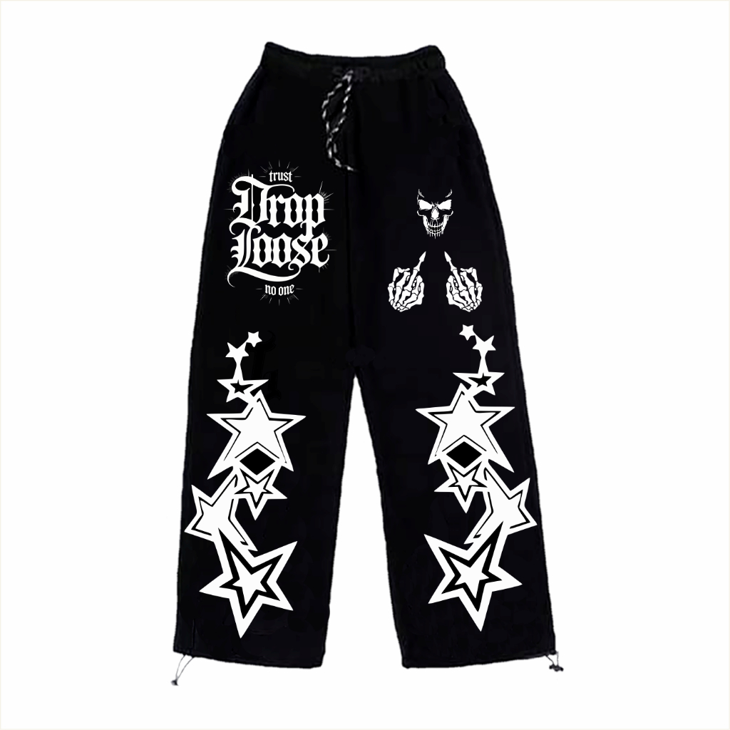 Celana Skena Anak Baggy Laki-laki Perempuan Usia 4-13 Tahun Motif Skull dan Bintang