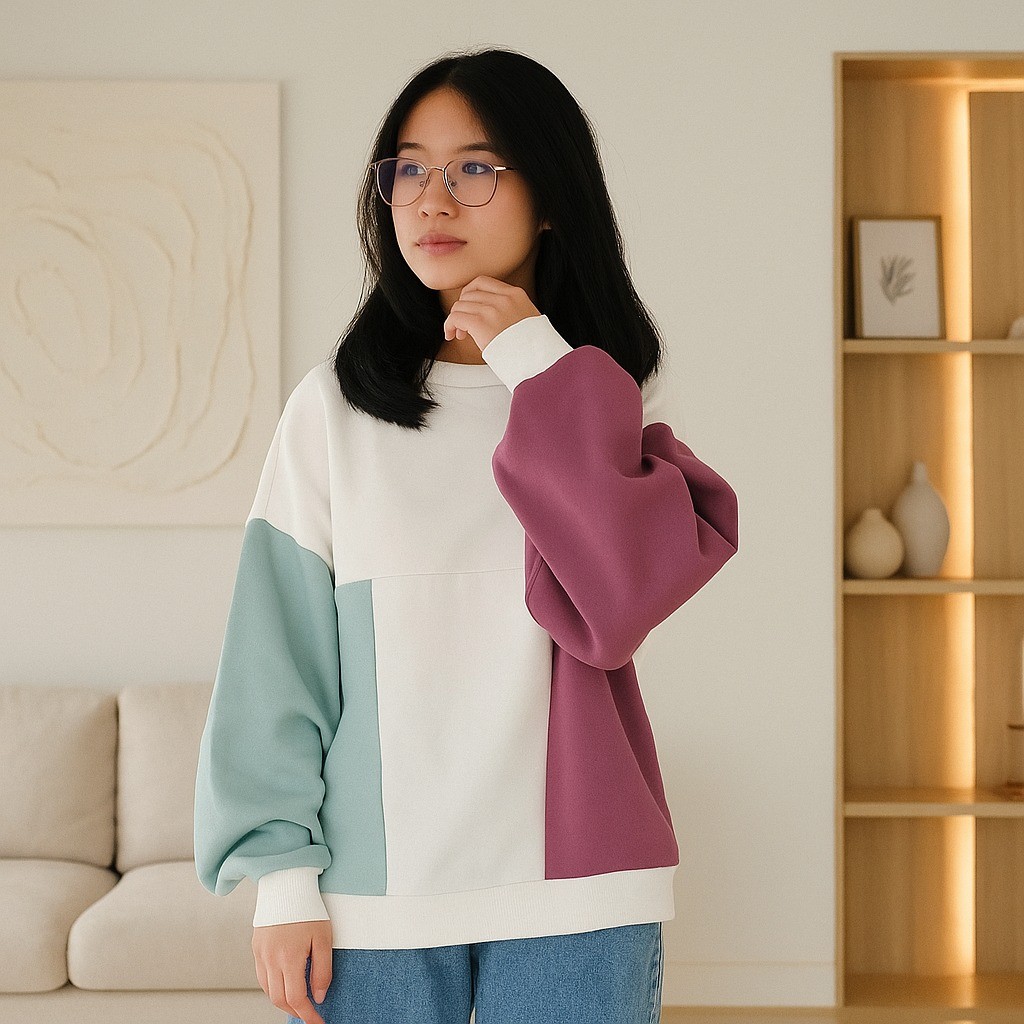 Vallina Oversized Candiez Sweater Premium Reglan Color Remaja Wanita Korean Style l Fuji Combie