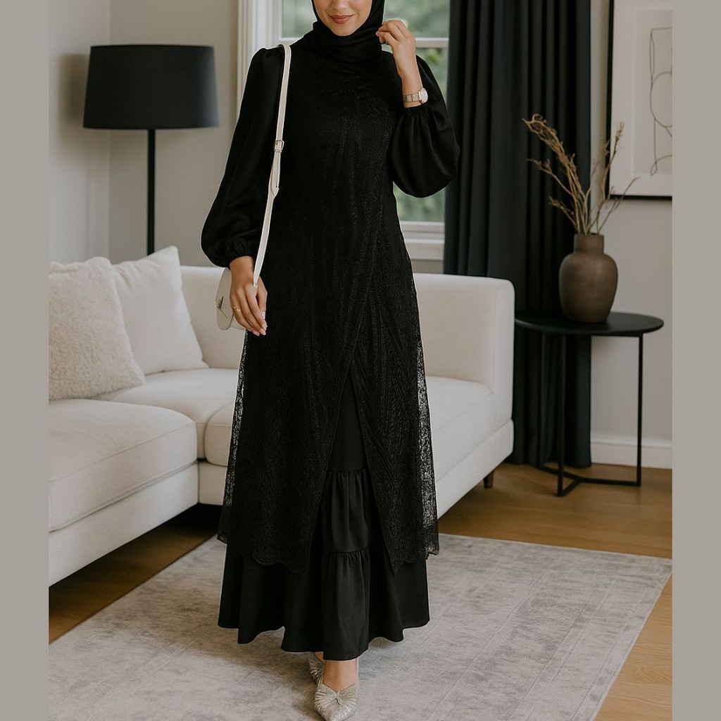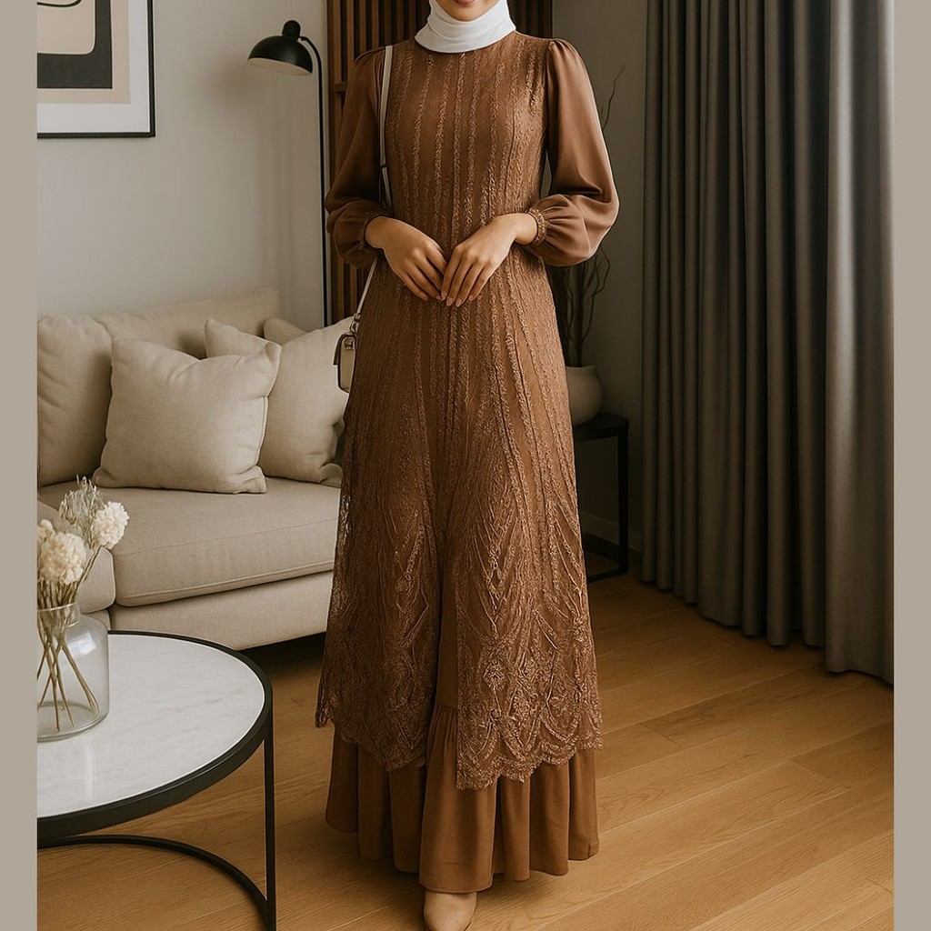 Olivia New Dress Maxy Wanita Muslim Matt Velvet Mix Brukat OOTD Kondangan