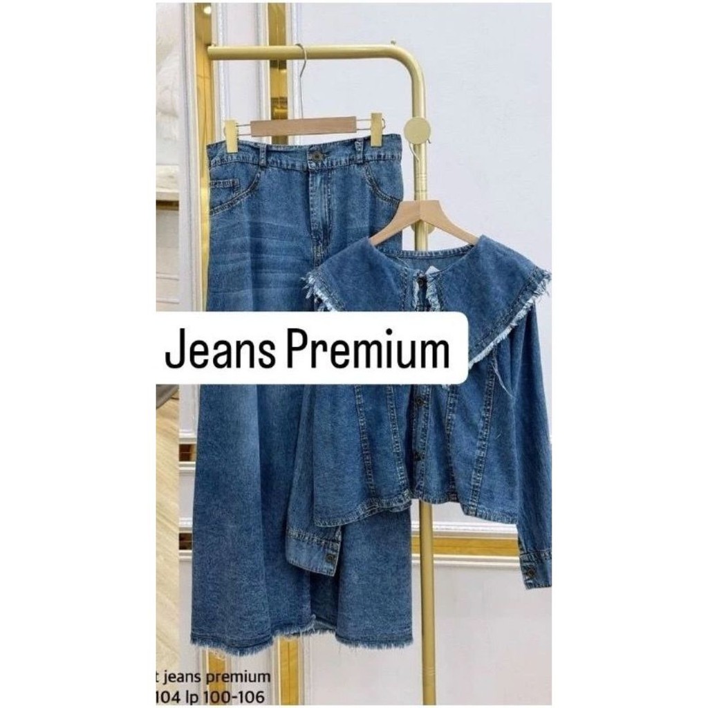 One Set Jeans Setelan Rok Wanita Muslim 2in1 All Size Fit To L OOTD Casual Daily