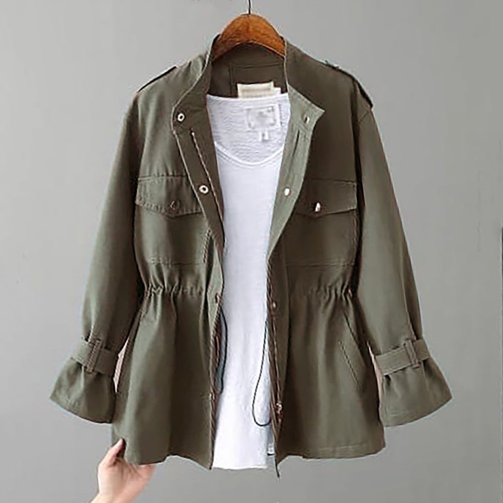 Veranda Button Zipper Parka Jaket Wanita Canvas Premium Outerwear Remaja Korean Style