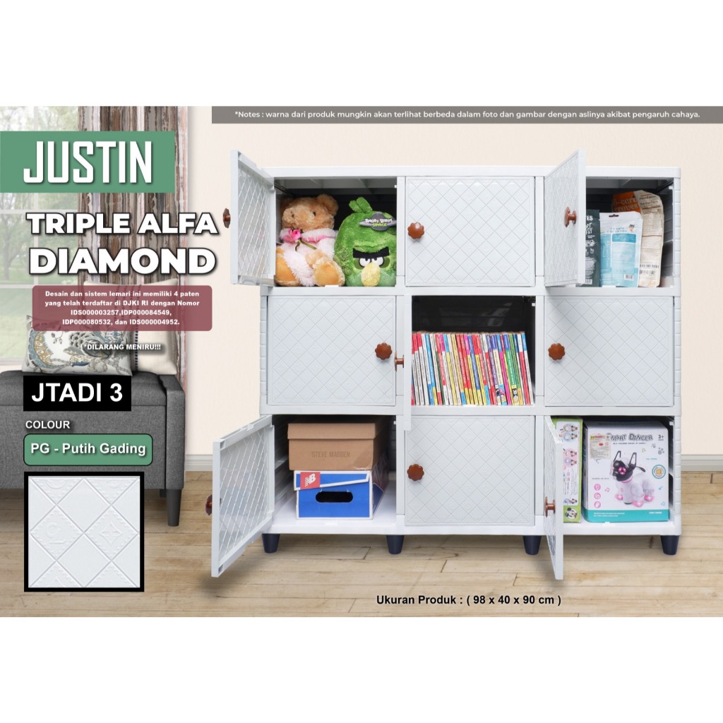 Lemari Plastik Pintu Geser - Laci Plastik Rak TV / Meja TV Justin Triple Flip Susun 3 Gratis Ongkir