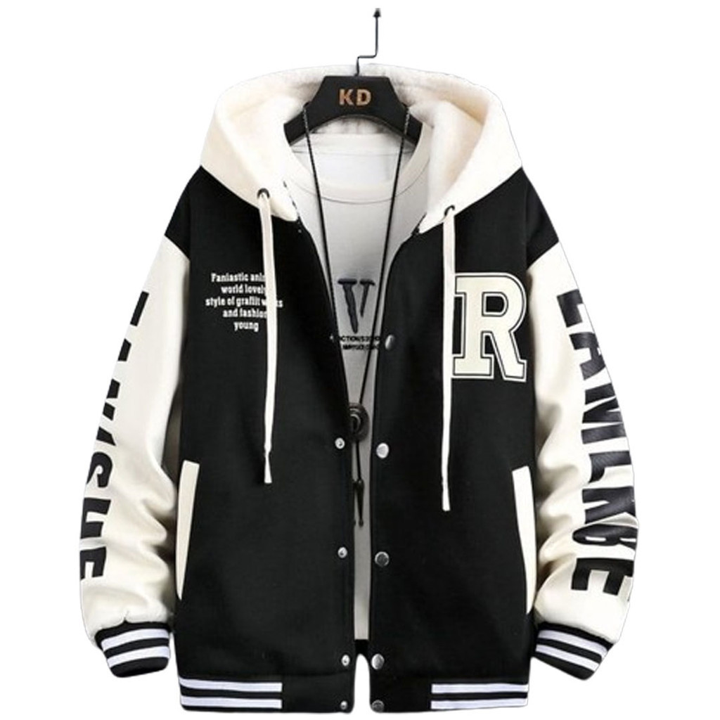 R Fanishe Jaket Baseball Hoodie Pria Matt Fleece Tebal Premium OOTD Korean Style Casual Daily