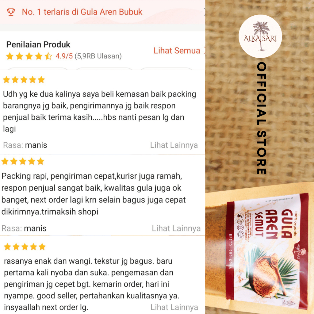 Gula Aren Semut / Nira Aren Bubuk Organik Alka Sari 1Kg