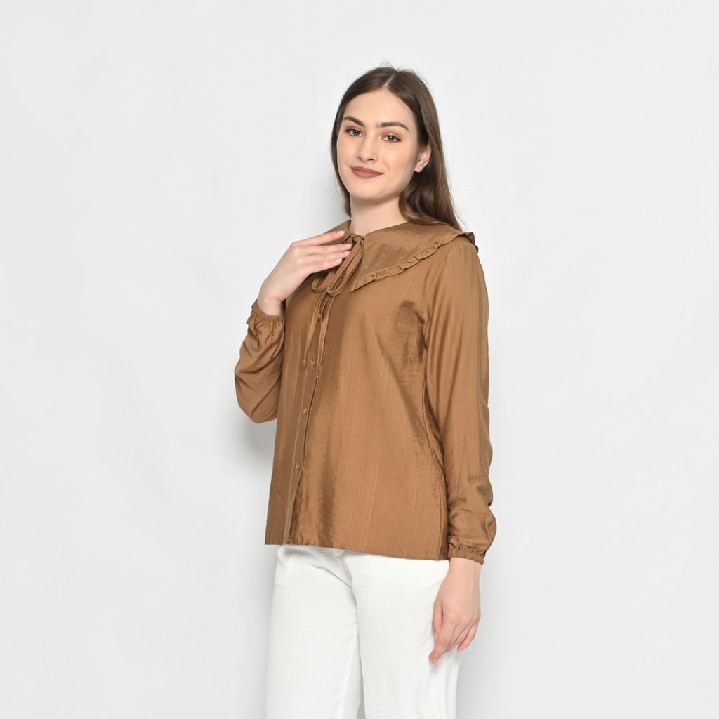 Kemeja Wanita Tali 0165 Linen Polo Polos Lengan Karet Panjang
