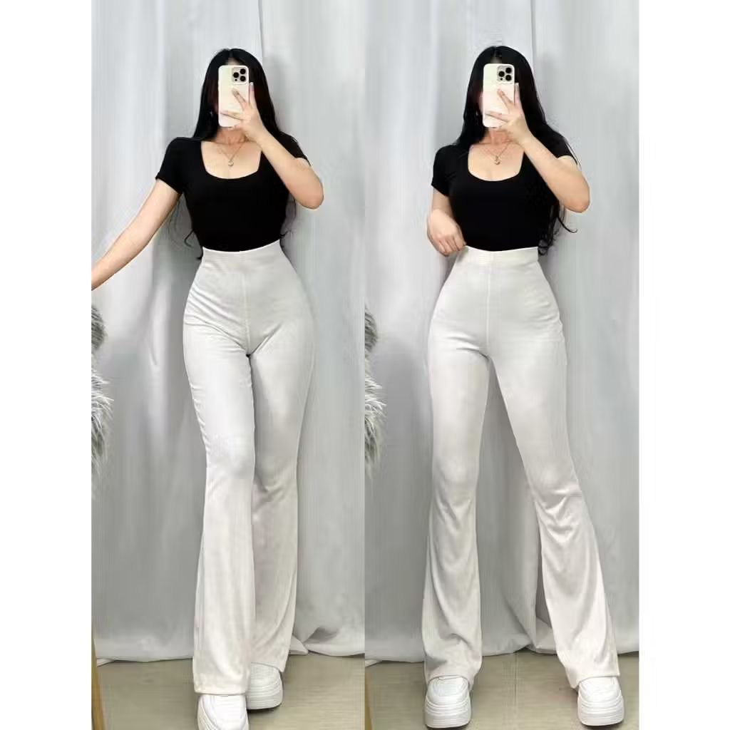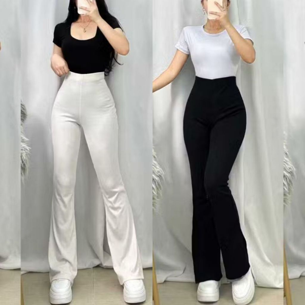 Celana Fit And Flare Pants Kulot Cutbray Scuba Pinggang Highwaist Bahan Stretch Melar Elastis