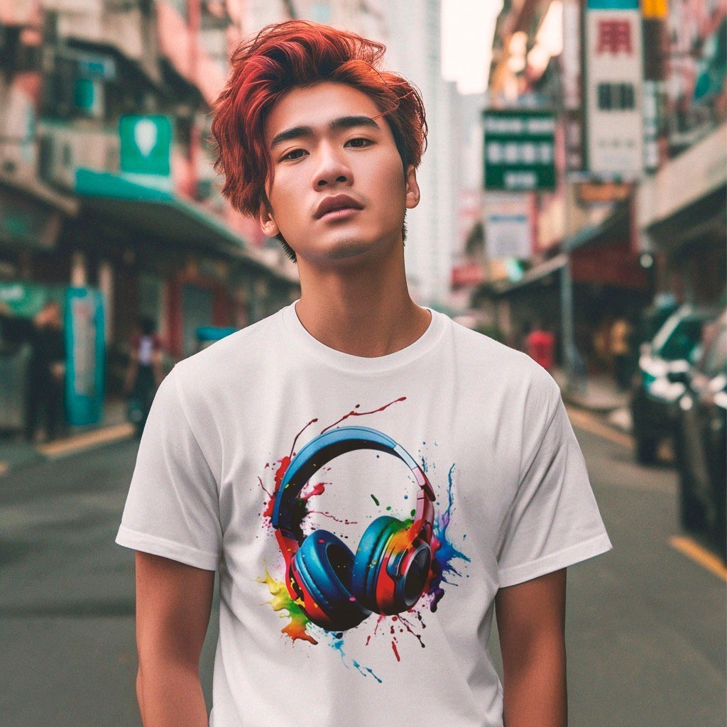 Nurdiansyah Style -Kaos Distro Premium Original 3D Headphoe Rainbow Color - DT0093