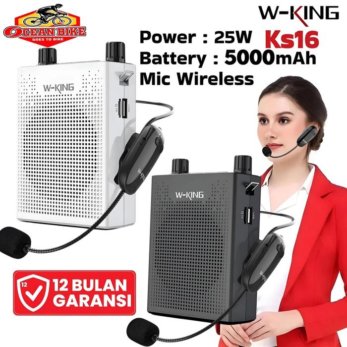Wking Speaker Bluetooth KS16 Pinggang Mic Karaoke Mini Portable W-king mengajar seminar Tour guide