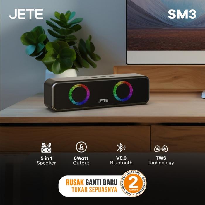 JETE Speaker Bluetooth Portable V5.3 SM3 with LED Light - Garansi Resmi 2 Tahun