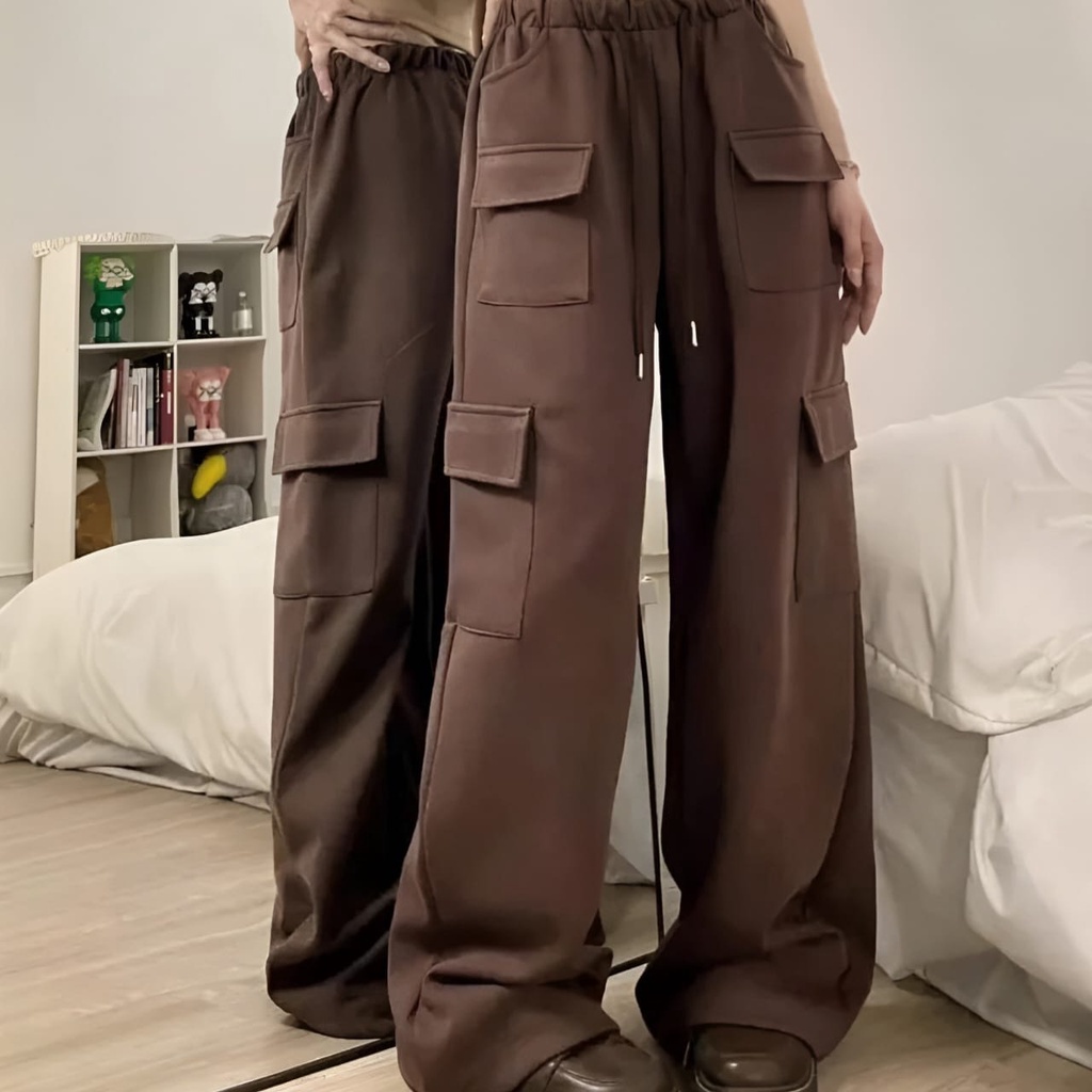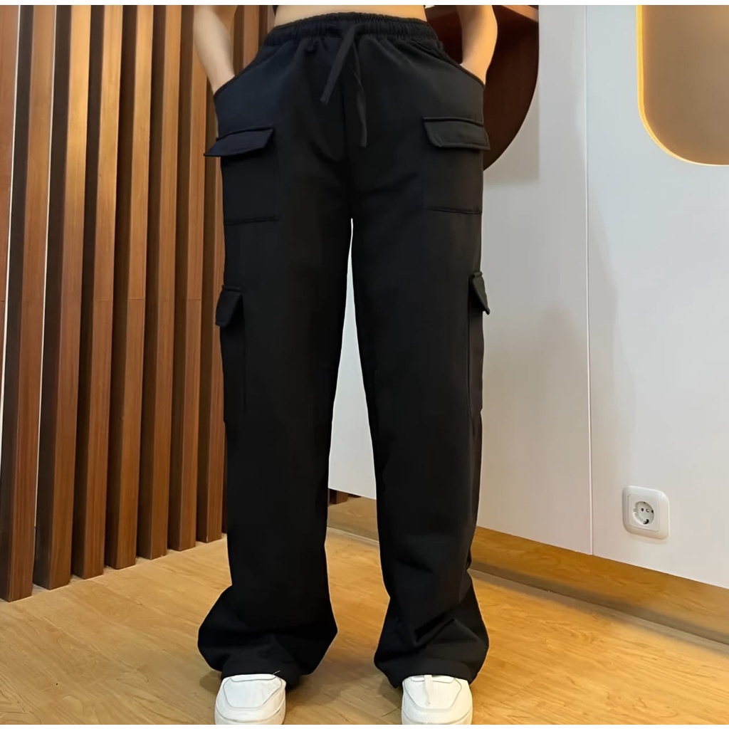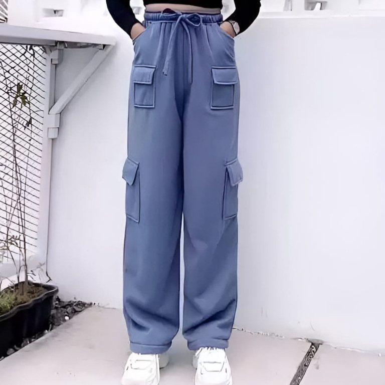 Jooly Up Pant Cargo Celana Panjang Pocket Oversized Fleece Tebal Korean Remaja Wanita - Fuji Sweatpant