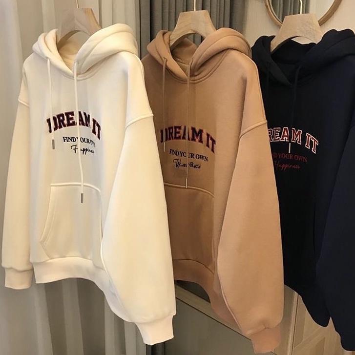 Vallina Premium Sweater Dream It Hoodie Pullover Premium Fleece Tebal Outerwear Basic Remaja Unisex Wanita Pria