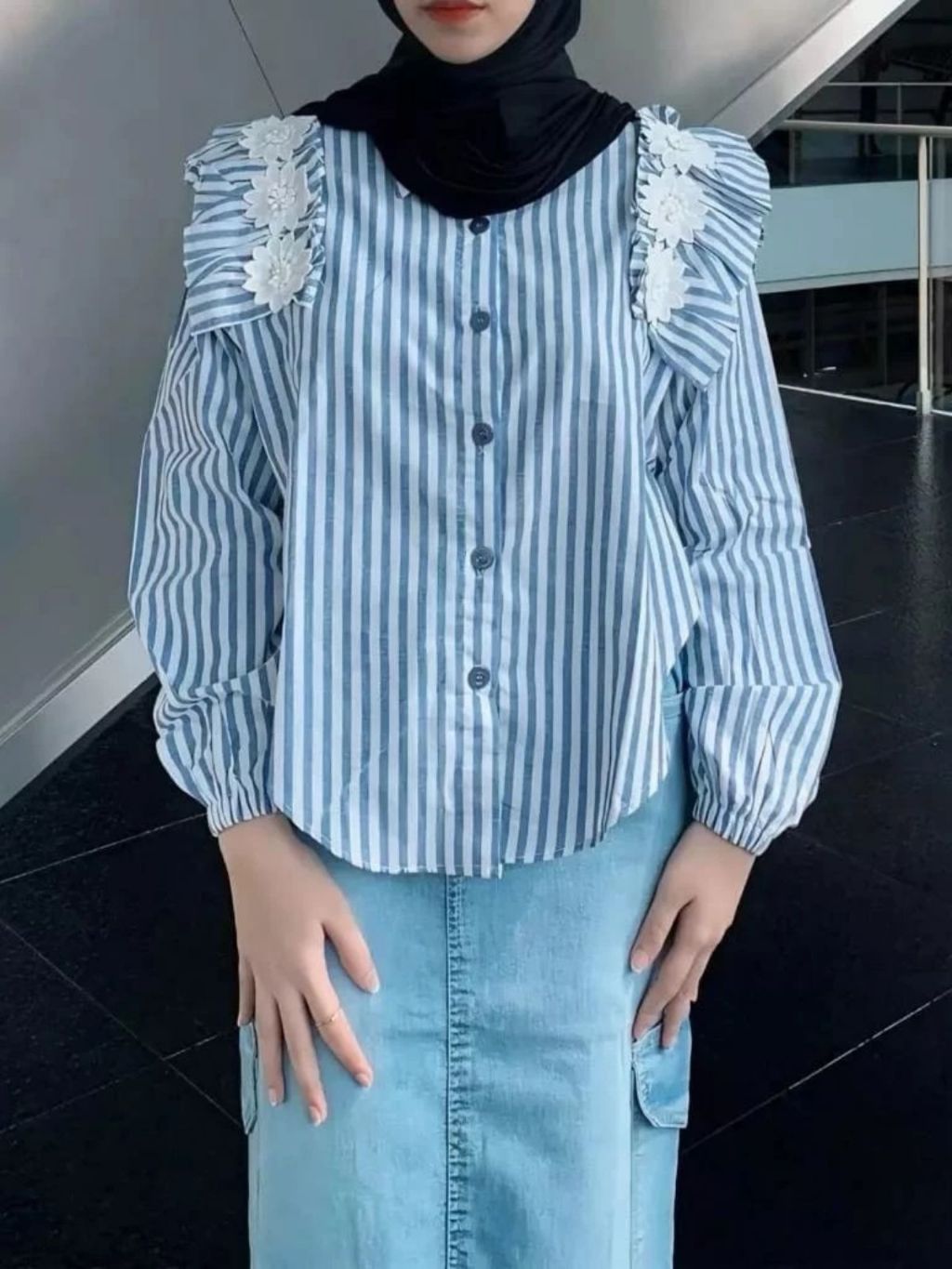 Lolita Top Atasan Wanita Muslim Katun Salur Premium OOTD Korean Style Casual Daily
