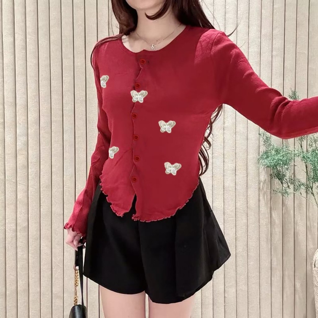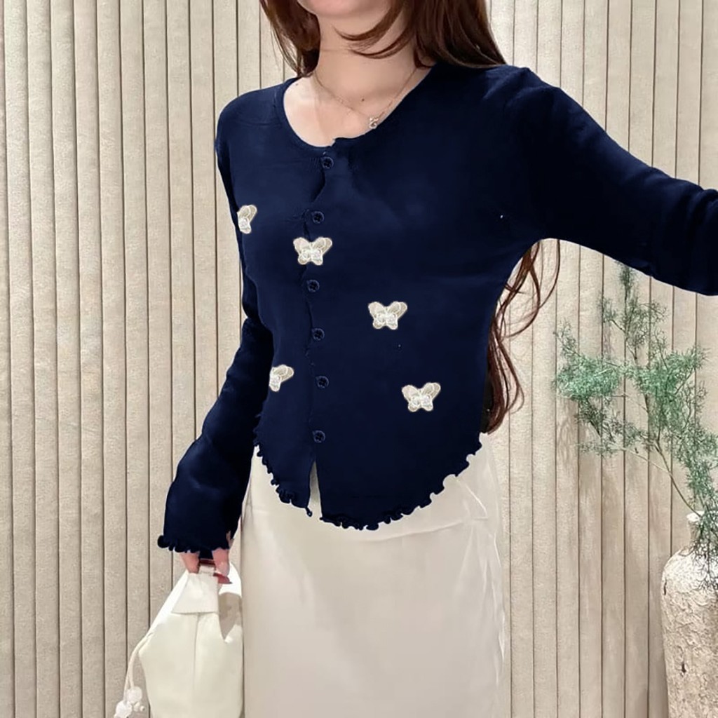 Cardigan Kupu Knit Butterfly Cardy Outer Wanita Remaja Matt Knit Premium Casual