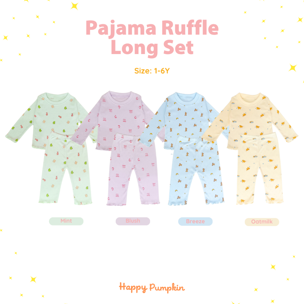 Dreamy Pajama Ruffle Set - Setelan Anak Lengan Panjang 1-6 Tahun Motif 4 Warna – BreatheKnit™ Adem & Lembut