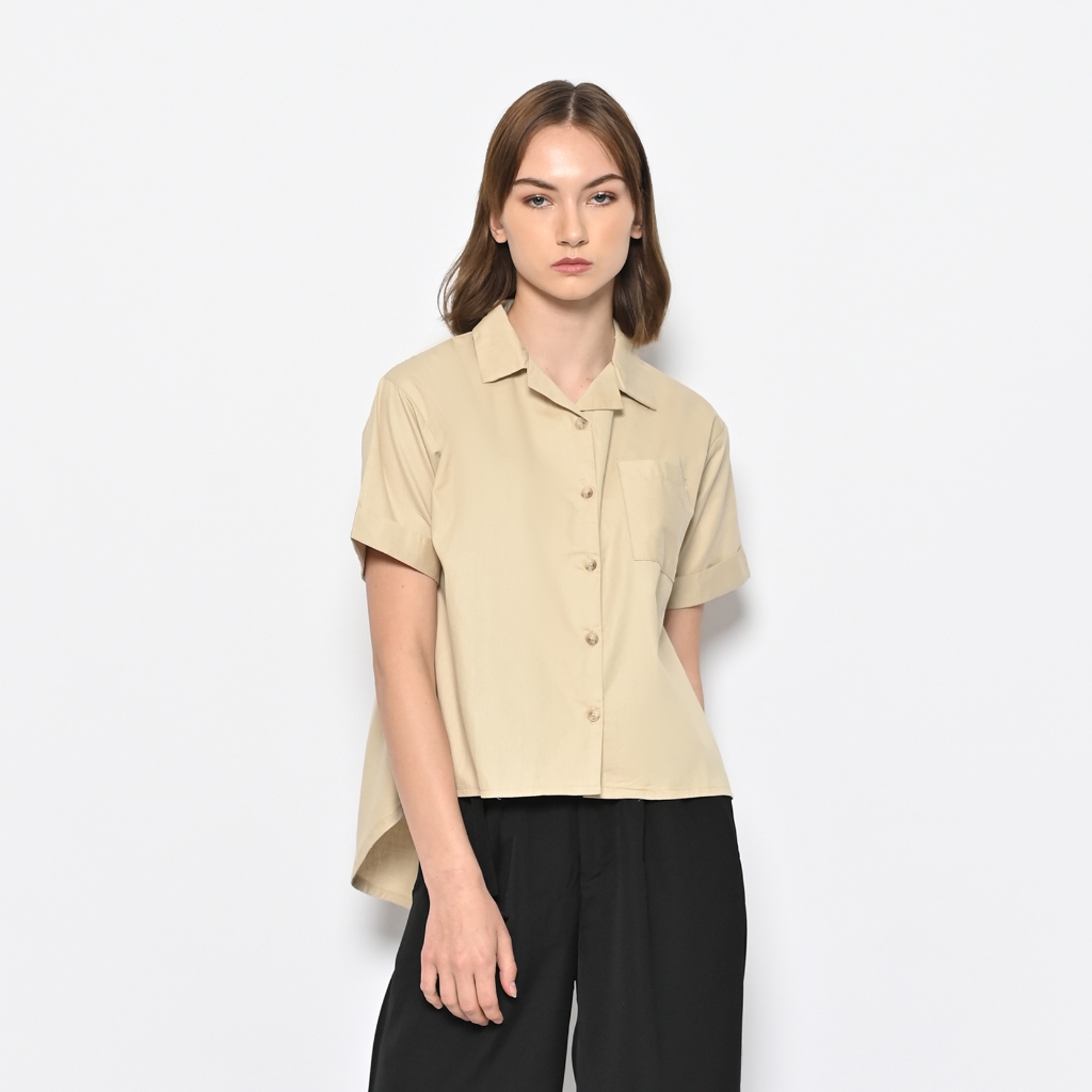 Kemeja Wanita Casual 0195 Katun Twill Polos Lengan Pendek
