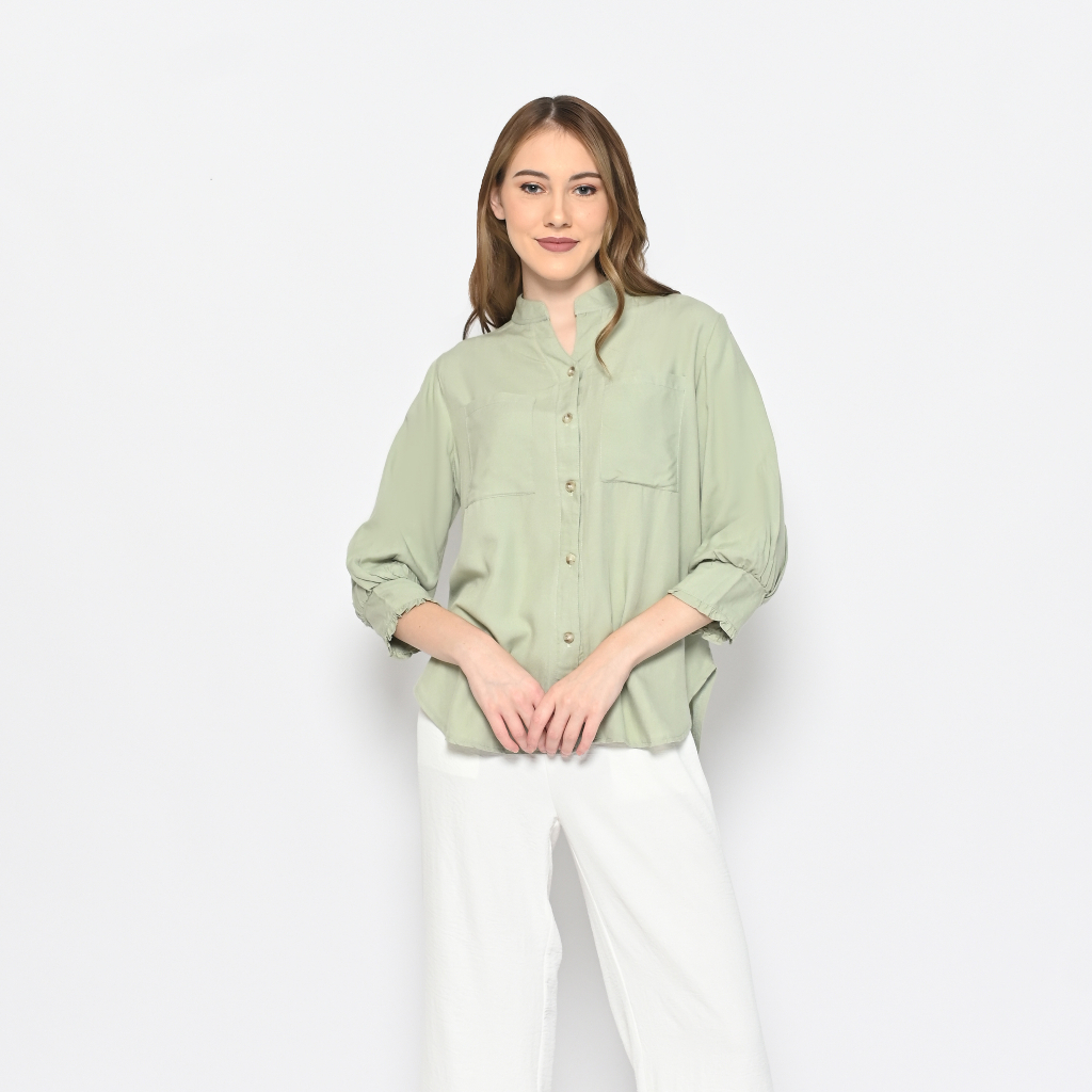 Kemeja Casual Wanita 0221 Katun Rayon Polos Premium Lengan Panjang