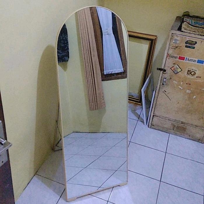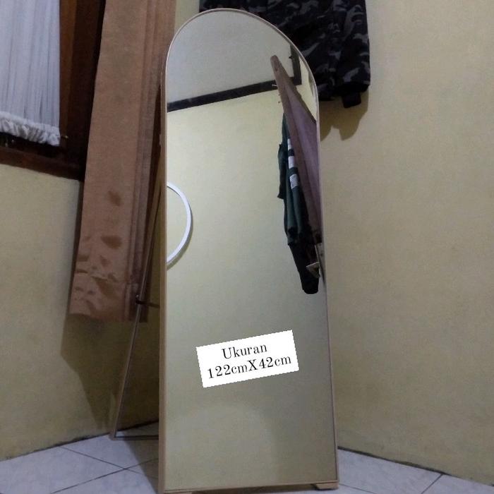 GRATIS PACKINGKAYU Kaca Cermin cermin stending mirror oval full body ukuran 122x42 Putih Coklat