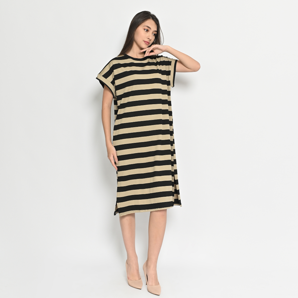 Korean Dress Wanita 6058 Rajut Striped Stretch Premium Lengan Pendek