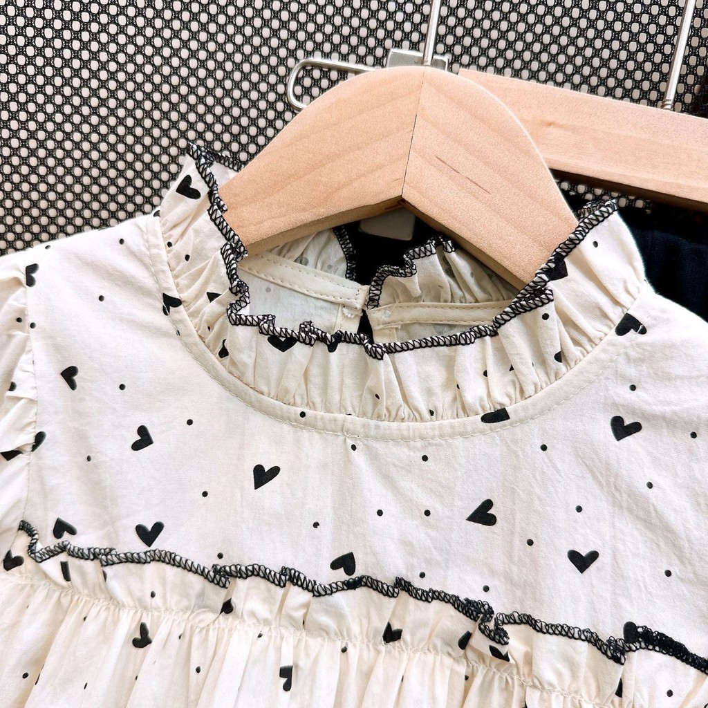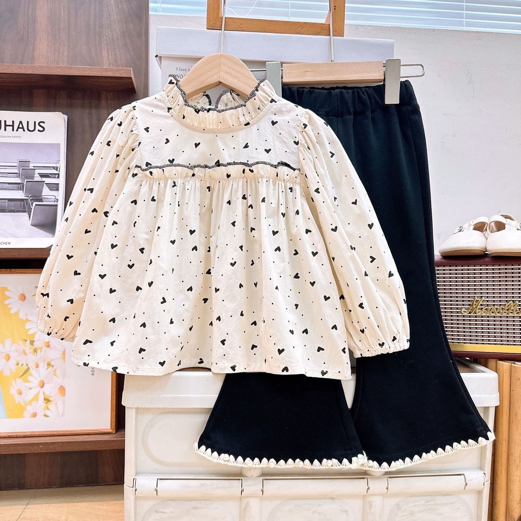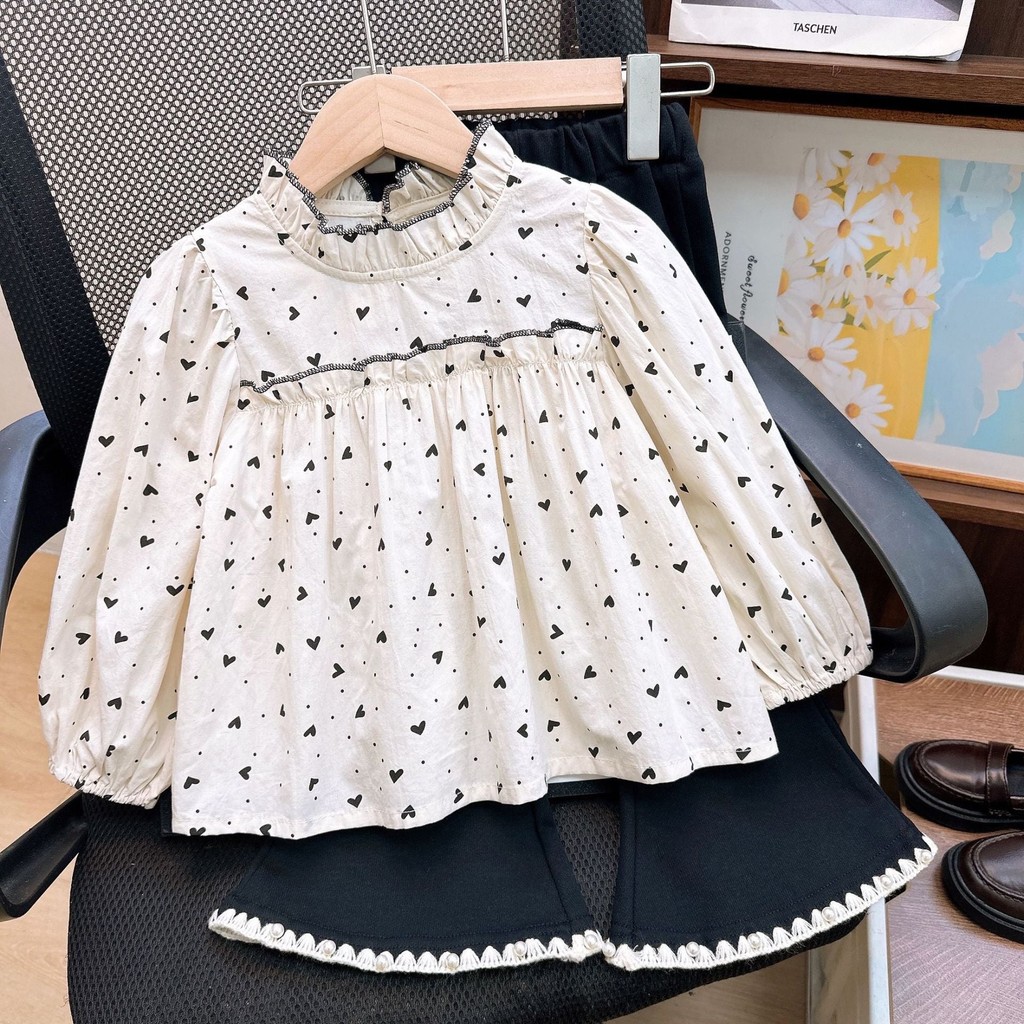 Setelan Baju Blouse Lengan Panjang Celana Panjang Fashion Anak Perempuan - Motif Little Heart
